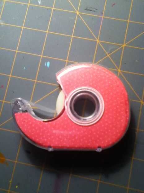 para esto se necesita:• Cinta en un dispensador de cinta• Palillo del pegamentoPegamento en una botella (como Elmer) no funcionará.Paso 1: iniciar Retire la cinta del dispensador de la cinta.Paso 2: continuar Ponerlo nuevo, pero esta vez boca abajo,