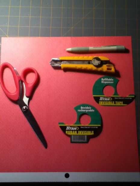 ~ lápiz ~ Papel decorativo, ~ las tijeras, ~ elaboración de cuchillo (cuchillo del exacto,) ~ el interior del dispensador de cinta de papel. ~ Dispensador de cinta recargable