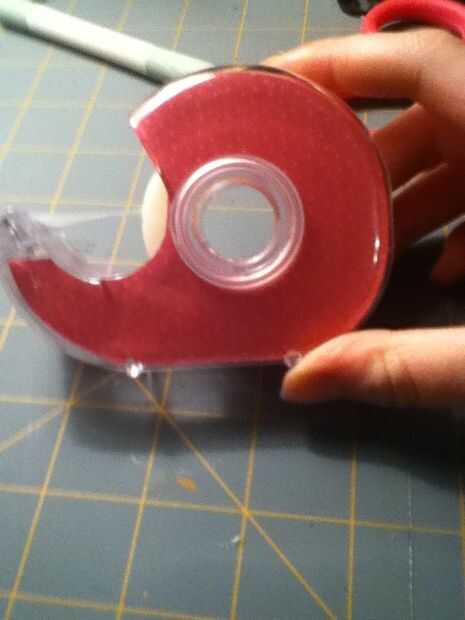 para esto se necesita:• Cinta en un dispensador de cinta• Palillo del pegamentoPegamento en una botella (como Elmer) no funcionará.Paso 1: iniciar Retire la cinta del dispensador de la cinta.Paso 2: continuar Ponerlo nuevo, pero esta vez boca abajo,