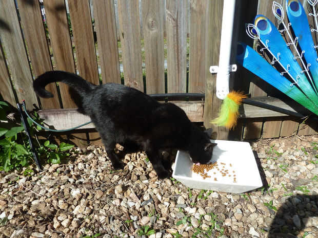 Mi gatito Enya es un gato de tamaño pequeño. Cuando he puesto en ella la etiqueta tradicional pedante, mantenido por golpes en su plato de comida y en todas partes. Era ruidoso para mí, así que sólo puedo adivinar cómo estresante era para ella. Así q