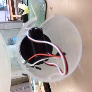 • Taladre 1 orificio de 20mm en el lado más corto del tubo acrílico unos 150mm del extremo. Y otro agujero del mismo tamaño en el centro de la cúpula.