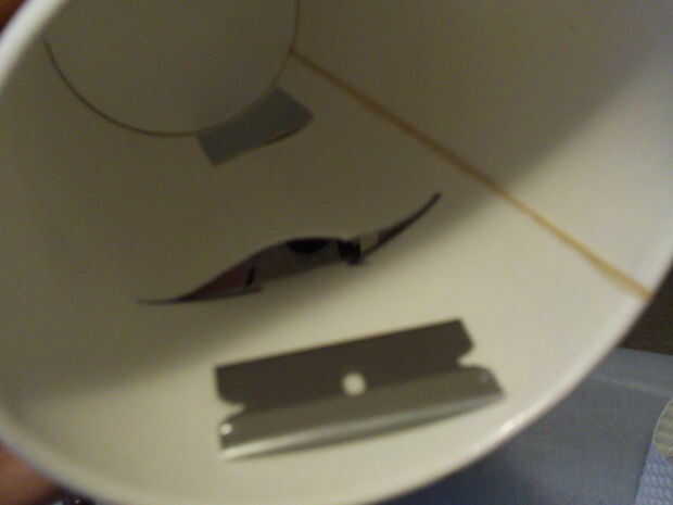 7. ahora usted debe ser capaz de hacer más grande la abertura, cortar una segunda línea justo debajo de la primera. Este rasgón hacia fuera.