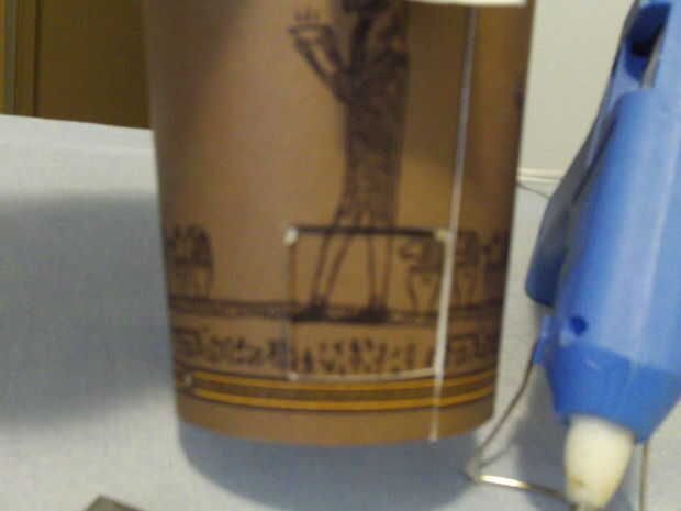 3. este pegamento caliente a la taza de tamaño alto, será más fácil hacerlo con las tazas separadas.
