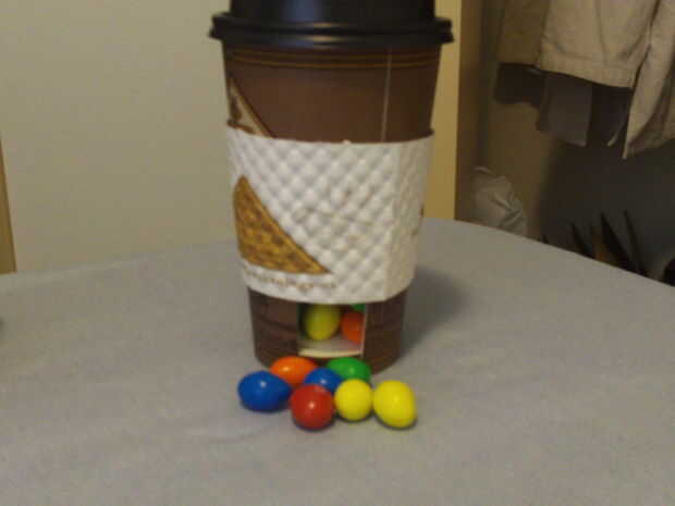 trabajo en una tienda de comestibles que vende café en las tazas de café aislados. Durante mucho tiempo sólo teníamos sentada en el armario boca abajo. Las tazas conseguiría polvorientos y sucios de estar donde estaban, así que hice un dosificador pa
