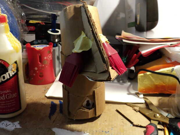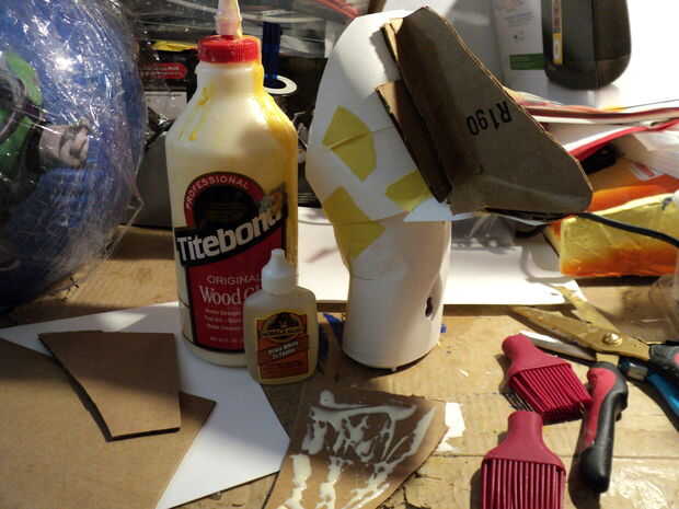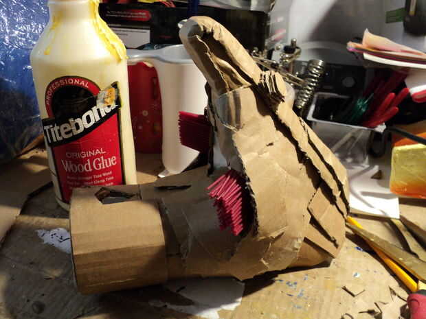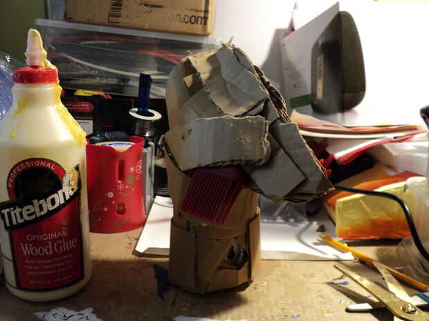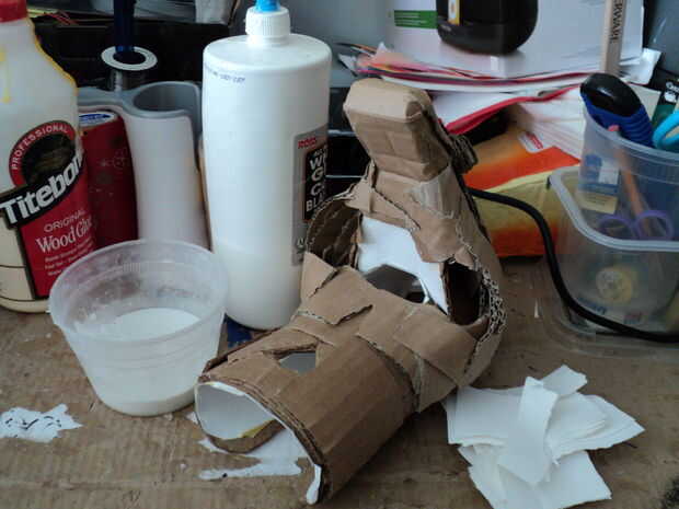 Acumular varias capas de cartón y sólo mantener pegado en las piezas para completar la forma.