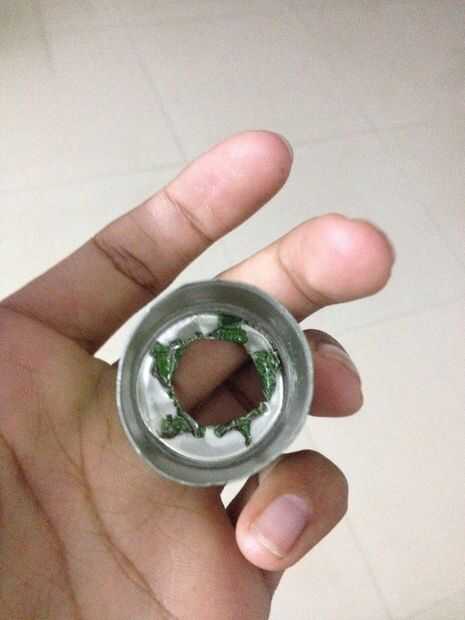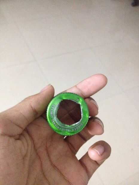 - La vuelta la tapa y aplanar las piezas afiladas con algo duro (alicates fue utilizado otra vez).