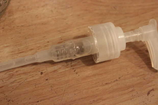 Siguiente paso en el orificio del proceso de fabricación es para ensanchar el agujero. El agujero debe ser lo suficientemente amplia como para permitir que la sección de primavera cerrado del dispensador a través de la tapa pero lo suficientemente pequeño como para que la sección de tapa roscada exterior descansa sobre la tapa. El diámetro del agujero que tenía que hacer era ¾ pulgadas así que tomó un corcho con aproximadamente el mismo diámetro y trazó el contorno en el centro de la tapa. Ahora saque sus alicates de punta e insértelas en el orificio producido por el clavo. Con una mano agarre la jarra comienzan a girar las pinzas en la tapa. La tapa metal comenzará a pelar detrás como el agujero se ensancha, cuando se alcance el diámetro deseado.