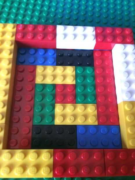 Paso 1: piezas Verde cuadrado piezaPiezas de lego de la cuestaPieza de LEGO con agujeroPaso 2: Cómo montar Hacen un rectángulo y la hacen que la pieza de lego con el todo en él es en la parte inferior y las piezas curvadas están en la parte superiorP