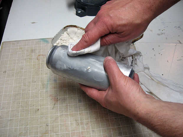 Frotar el compuesto para pulir en el poder hasta conseguir el acabado que desee. Luz pulido le dará un aspecto nublado, cepillado y más dará como resultado un brillo de espejo.
