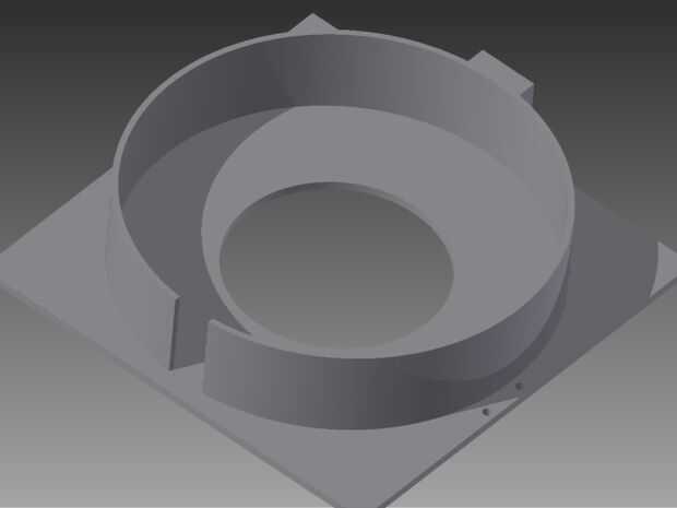 A continuación hice la base cubierta de la rueda que tiene el medicamento en la rueda y también tiene la ranura para el medicamento para caer por cuando en la posición correcta. Ya que la cubierta necesita ajuste de la rueda apretado pero también libre circulación, fui por una separación de 1 mm a cada lado, dando por resultado un interior 140 mm de diámetro. El shorud también tiene que ser un poco más alta que la rueda de modo que la tapa se ajusta hacia abajo sobre él, por lo que las paredes laterales son 30 mm de alto. Puesto que las ranuras de 13 mm a través de como los extremos, la ranura en la parte delantera de la cubierta debe ser de 13 mm. Un recorte en la parte inferior de la Sábana Santa es necesario porque la rueda se monta directamente en el motor paso a paso que está en un montaje del motor conectado directamente a la caja base. Este agujero del recorte fue 70 mm de diámetro. Se hace una saliente rectangular en la parte posterior para que una bisagra de la tapa puede acoplarse a la Sábana Santa. Para esto es simplemente fui a Ace hardware y tiene las bisagras en segundo lugar más pequeñas que tenían, que eran 3/4 '' de ancho hecho de latón. La protuberancia rectangular sólo necesita ser lo suficientemente grande para accomdate la bisagra. Finalmente, los agujeros se hicieron en los lados de la Plaza base para unir los soportes de la base de la cubierta. Estos pueden omitirse si se desea perforarlos más adelante.