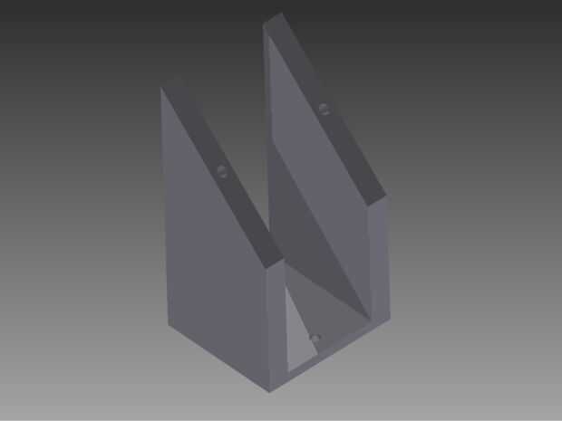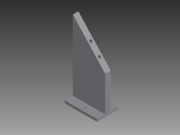 Las partes siguientes fueron los soportes para el motor paso a paso y la base cubierta. El montaje paso a paso fue 79mm de alto y 45 mm de ancho en la base con 29 mm entre las monturas de dos lados y un ángulo de 45 grados inclinada hacia abajo desde la parte superior. Los agujeros se hacen con el fin de coincidir con los agujeros de montaje para el motor paso a paso y sujete el soporte a la caja base. Los soportes de la cubierta fueron ligeramente más altos, por un total de 83 mm de altura y 35mm con el mismo ángulo de 45 grados. Agujeros se hicieron coincidir con los agujeros en la cubierta y la caja base.