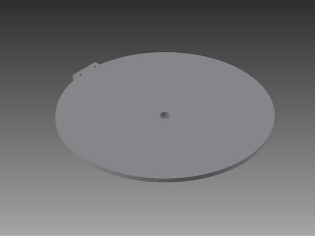 La tapa fue realizada utilizando una láser cortador y 1/8 '' madera contrachapada. También se realizó el diseño en inventor, haciendo la rueda 140 mm de diámetro para que coincida con el Sudario y añadiendo un principio rectangular en la parte superior para que la bisagra se puede montar.