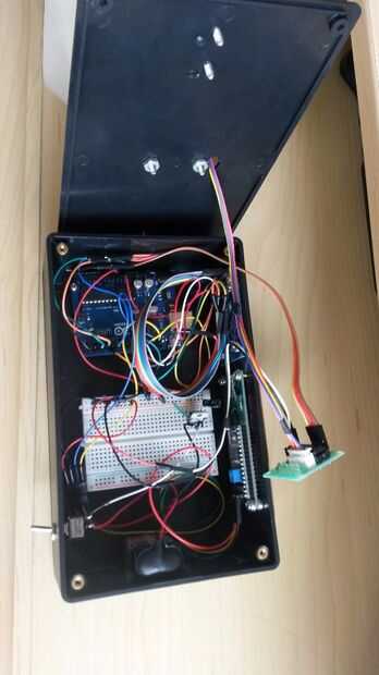 El último paso es instalar el sistema de control en el cuadro de base. Esto se logró por primera la pantalla LCD de montaje en una ranura de corte en el frente de la caja. Puesto que el agujero del recorte era más grande que la pantalla LCD y miraba feo, un láser corte marco fue hecho y colocado alrededor de la pantalla LCD. A continuación, la tarjeta RFID fue montada siguiente pantalla LCD o el frente de la caja. Es importante que el lector de RFID es montado al ras contra el lado de la caja, como la gama es limitada y la tarjeta debe ser capaz de leer desde fuera de la caja. El Arduino, protoboard y la batería se pueden montar dentro de la caja. Que utiliza uno de los separadores de plástico dentro de la caja para montar el Arduino y simplemente pegan el tablero de pan en la parte inferior de la caja utilizando el adhesivo que se le atribuye. La batería fue asegurada luego al lado de la caja usando cinta, que permite fácil reemplazo si es necesario. El último paso es montar el interruptor en el lado de la caja, que se celebra en lugar intercalando entre los lados de la caja con dos tuercas.