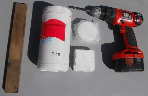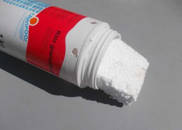 Entonces un poliestireno piezas ponen en la botella hasta el fondo. Cortar poliestireno un poco más grande como la botella, se debe estirar a la botella!