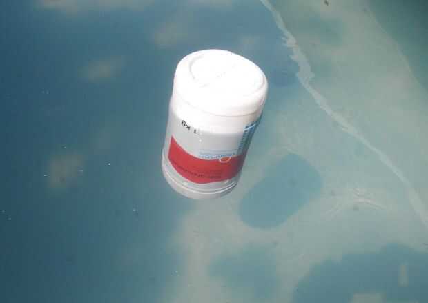 Poner un maxi combinado o tabletas de cloruro en la botella y puede va a la piscina.