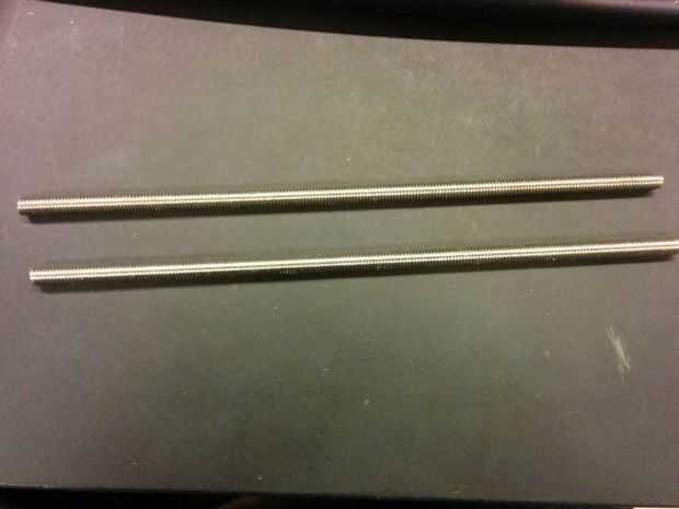 ZAAG het schroefdraad met de ijzerzaag en stukken drie: twee stukken van 20 cm, stuk één van de 6 cm