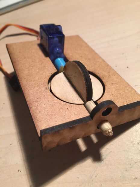 Se construye la unidad de motor, conectando 4 quart-círculos junto a un eje de madera. Los círculos como el panel que sostiene el motor fue cortar con un cortador láser.