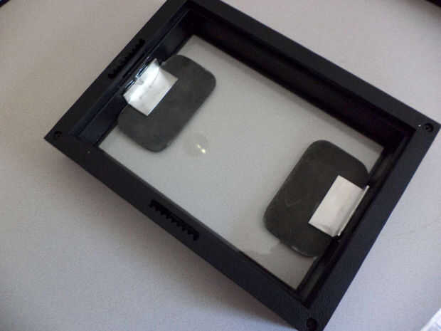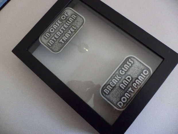 Abrir el cuadro de sombra y ponga la pieza posterior a un lado. Las señales deben montarse en la parte delantera del shadowbox, apretado al vidrio. (Prestar atención a la percha de pared en el shadowbox. Asegúrese de que el signo superior es en la parte superior y el signo de la parte inferior es en la parte inferior. )