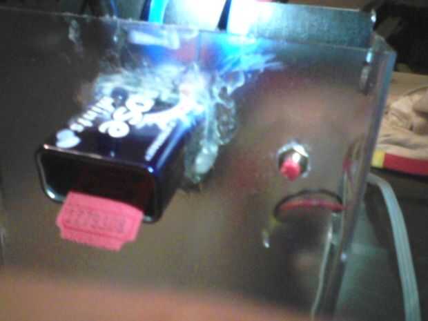 Yo simplemente cortar un agujero en la caja de plástico había insertada la lata y caliente pegué en su lugar.