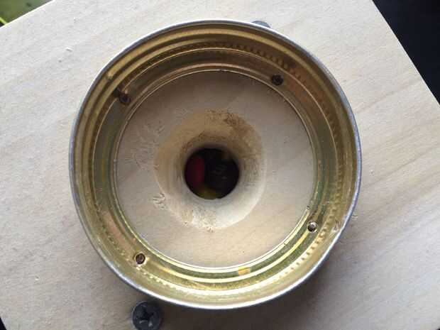 Luego tienes que perforar un agujero de 1 a 1,25 pulgadas en medio 5.5 final por 5.5. Después de eso el centro el 5.5 por 5.5 uso poner 3 pulgadas tornillos (1 en la parte superior derecha y 1 en la parte inferior izquierda).