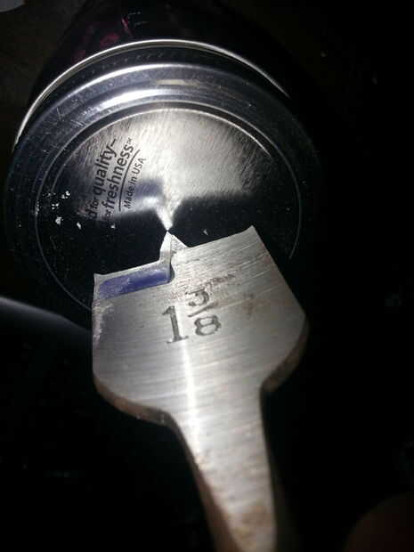 Cortar las tapas de masón tarros puede ser un poco complicado pero no es duro. Hay unas vías diferentes para cortar la tapa. Usé un taladro y una broca de 1 1/4 de pulgada. El tamaño de broca se determinará por el tamaño de su dispensor de jabón. Asegúrese de que hay suficiente espacio para el borde del dispensor de jabón a sentarse sobre de la tapa del tarro de masón. Una vez que sabes qué talla quieres tu agujero Quite la tapa y sujete hasta algo de modo que la tapa no spin y haz arruinado. Hacer el agujero del centro. Taladro de la manera lanzó la tapa con el prensatelas. Esto debe dejar con un agujero con algunos bordes de ruff que pueden ser presentadas abajo. Recuerde que usted no quiere el agujero a pequeñas o a grandes no quieren el dispensor de deslizamiento.