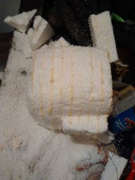 ADVERTENCIA: USE UNA MÁSCARA ANTIPOLVO O UN RESPIRADOR DURANTE ESTE PASO. POLVO DE ESPUMA DE POLIESTIRENO NO ES UN SABROSO MANJAR PARA LOS PULMONES!