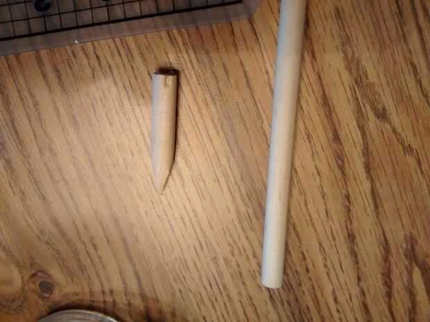 Necesitarás dos trozos de su pasador de madera, que se encajan en los agujeros que ha perforado. No tienes que utilizar el mismo orificio de tamaño y espigas como hizo, sólo asegúrese del que agujero y el pasador son del mismo tamaño.