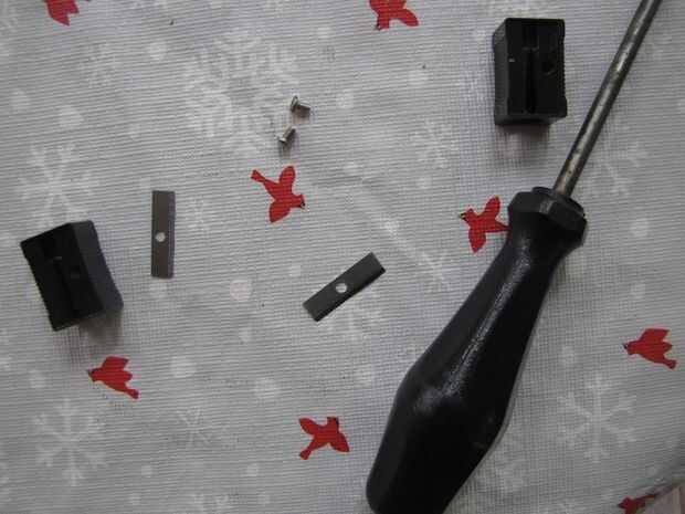 Ahora, coloque un poco de pegamento caliente sobre la parte plana de una hoja y presiona el lado plano de la otra hoja sobre ella para crear una forma de 'V' con los bordes agudos en el centro de la V. Es importante que las cuchillas toquen donde cruzan, o de lo contrario la herramienta no funcionará muy bien.