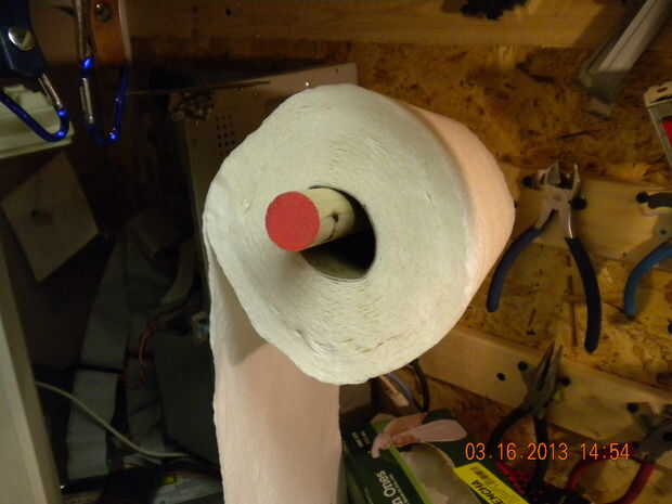 construir un Portarrollos de papel que pueden colgar prácticamente en cualquier lugar sin necesidad de instalar con tornillos o clavos.Paso 1: reunir los materiales y curvas la globo ocular recoger sus materiales.-un rollo de toallas de papel-una sus