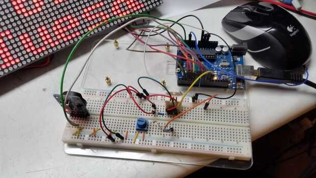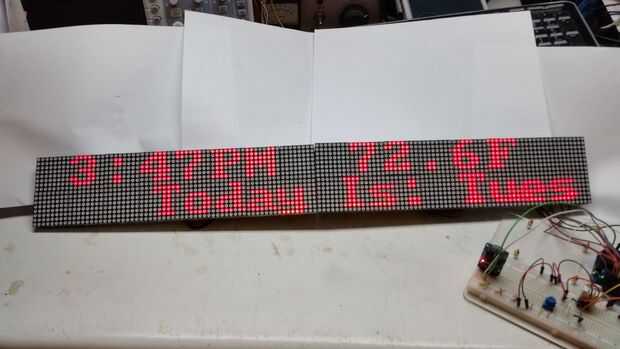 Estoy usando 2-16 x 64 pantalla de matriz de punto, 1 - RTCDS3231, 1 - DHT22 Sensor de temperatura y un Arduino Uno.