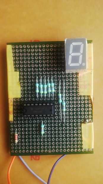 construido esto para mi novia y montado en una cáscara del coco. En el centro de ella hay un PIC16F727 en paquete TQFP y un display de ánodo común. Tengo la pantalla de mi ex-líder del equipo, y puesto que estos tipo de muestra 'gritar' para ser pues