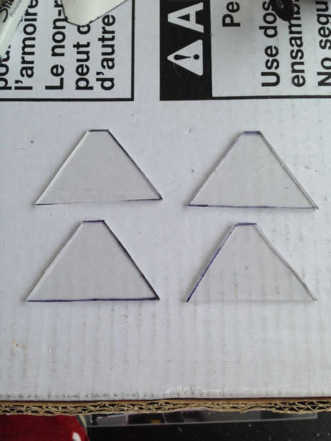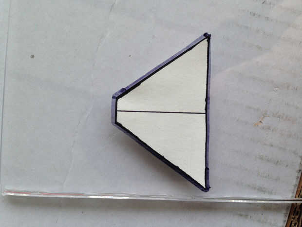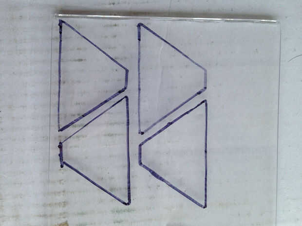 1. Ahora que tienes una plantilla, se puede trazar en la caja del CD. Poner un trocito de cinta en la parte posterior de la plantilla, primero coloque la plantilla en el caso de CD y trace una línea alrededor de la plantilla con un rotulador. Dibujar cuatro de estas pirámides.