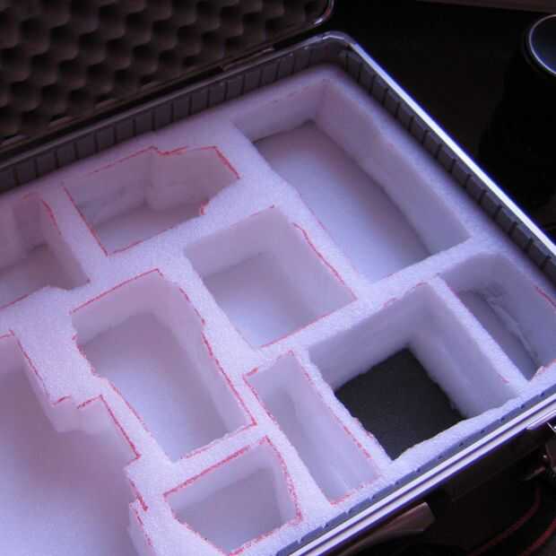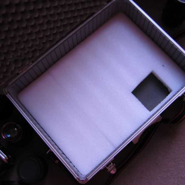 En el último momento decidí hacer agujeros en la capa inferior por debajo de los compartimientos de la lente a la película. Ahora puedo llevar 8 o 9 películas con la cámara.