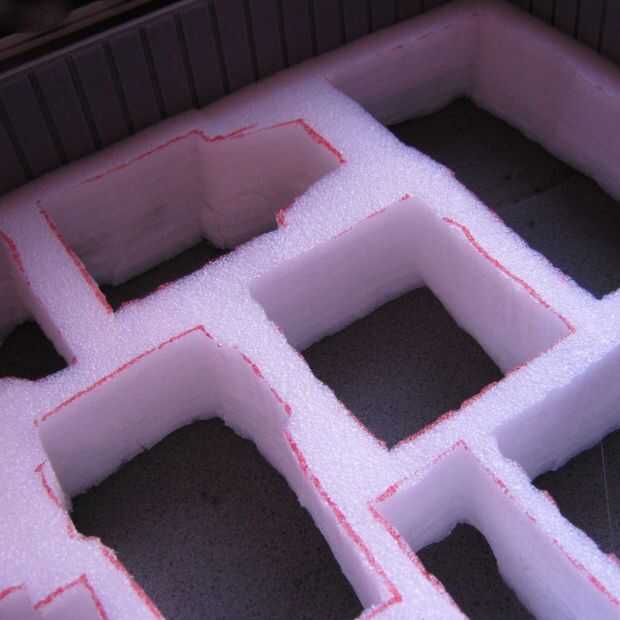 Como mencioné, hice un hoyo grande para los accesorios. Corte un agujero correspondiente en la capa inferior para que el compartimiento es agradable y profundo.
