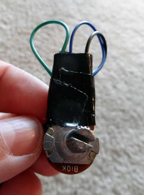 2. a continuación, envuelto el potenciómetro con cables hembra en cinta aislante, luego el velcro al lado.