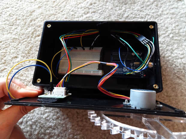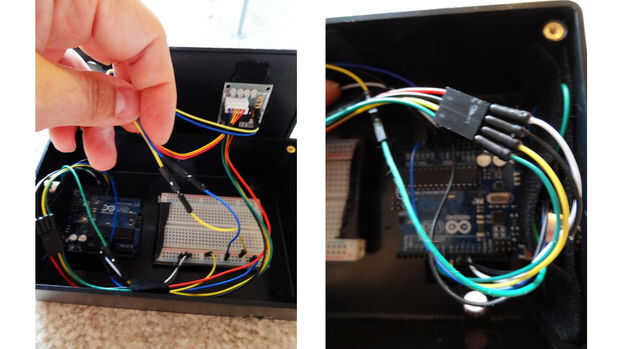 1. comencé pegando algunas cintas de velcro a la caja y en la parte posterior de la placa arduino.