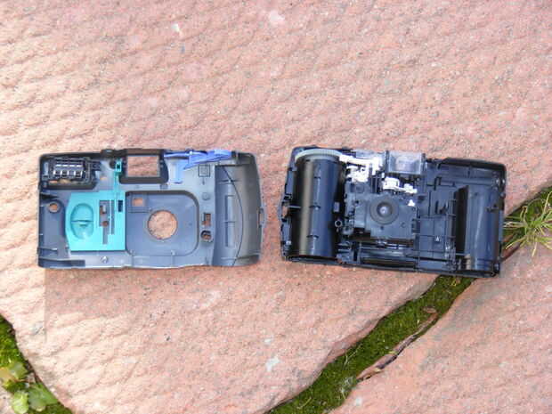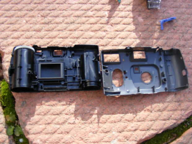 Bien, bastante simple, desarmar la cámara. (Las imágenes no muestran lo que está dentro de la cámara puesto que ya tomé aparte antes de la foto). MANTENER cada parte desde el interior de la cámara excepto el ELECTRICTAL piezas (excepto el flash, rasgar que fuera).