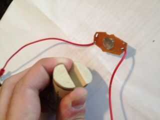 6) desde aquí, usted puede cubrir el botón en la cinta si así lo desean (no ilustrado). Simplemente he puesto una banda de Velcro alrededor del extremo del corcho que mantener el botón en su lugar (fotografiado). La tirantez de esta banda de Velcro puede ajustarse para mantener el botón en la posición "on" si así lo desean.