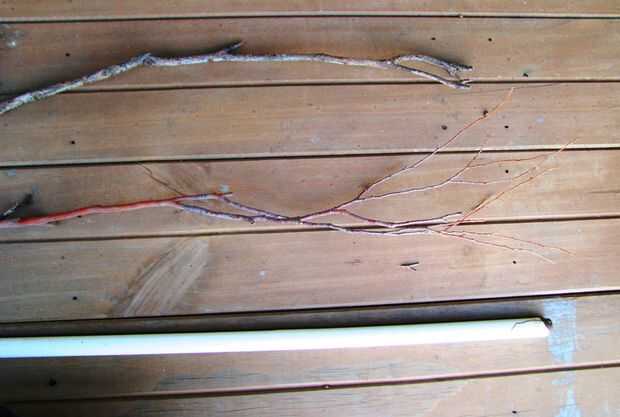 2. algunas ramitas de sus árboles/arbustos.-con un principal que cabe en su mango y 2 o más pequeño (pero no demasiado pequeños) twiggy cachitos en el extremo del tallo (ver foto).