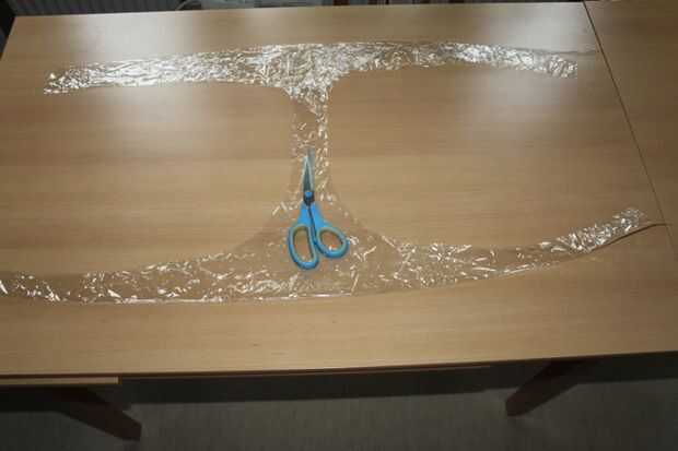 utilicé un papel transparente machacado. Mantener en la mesa y coloque la plantilla de tanga. PIN junto con el papel transparente. Ahora cortar a lo largo de la plantilla. El dibujo o la corte no tiene que ser exactamente en forma sizeand... Un poco aquí y allá estaría bien. Puesto que no tenía un gran papel transparente a lo doble, tuve que insertar un pedazo doblado por la mitad para el grueso.