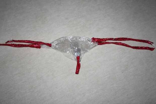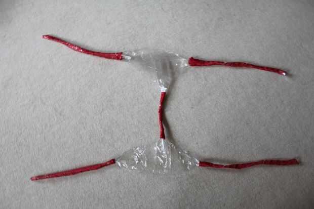 Empezar a envolver la cinta en los cuatro lados y en el medio. En el centro tiene que ser envuelto firmemente para conseguir el efecto de string Tanga :)