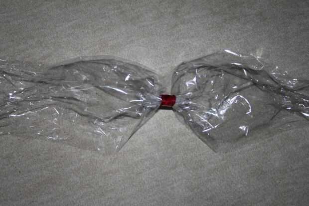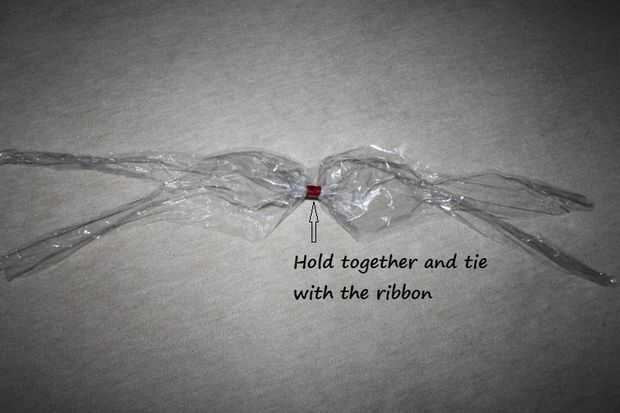 Coloque uno encima del otro, unir en el centro de la taza y atar con la cinta, sujete los lados y envuelva con la cinta.