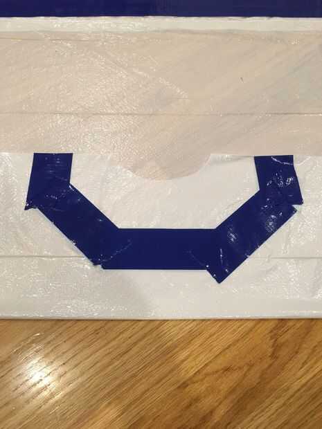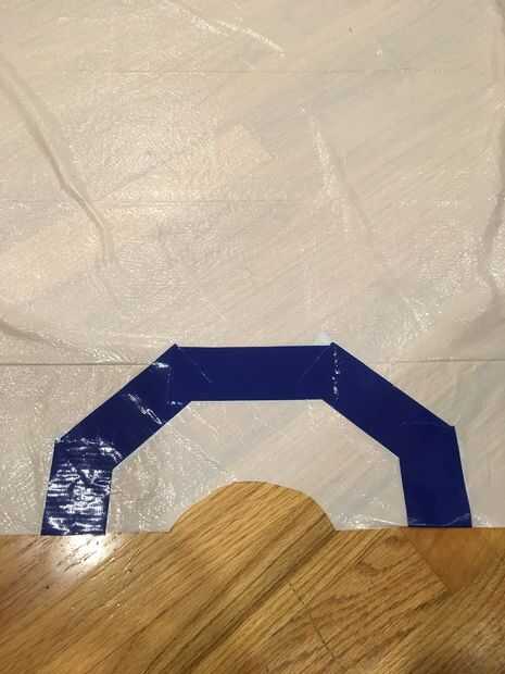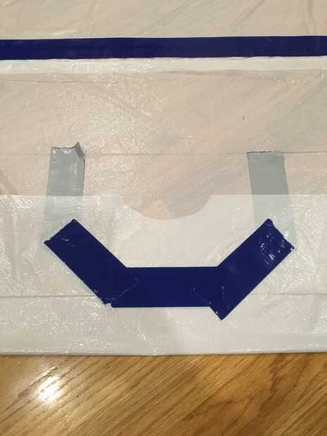 Localizar el borde inferior de tu conjunto de bolso, todavía está intacta/sin cortar. Encuentre el centro de este borde. Cortar una media luna con el mismo diámetro o radio del tronco de los árboles. Rasgar o cortar tiras (8) de cinta adhesiva alrededor de 6 pulgadas de largo. Con el diámetro de unos 14-16 pulgadas, cinta de la mitad de un hexágono alrededor del parámetro del orificio. Las piezas laterales serán la mitad de la bolsa y la otra mitad colgando sobre el borde. Levante el borde, doblar la cinta y aplicar las tres piezas restantes. Se estira la bolsa restante dentro del ring con cinta pero la cinta no. Puede que necesite ajustar basado en el árbol de base que utilizas. (Ver siguiente paso si usted necesita un visual para lo que quiero decir)