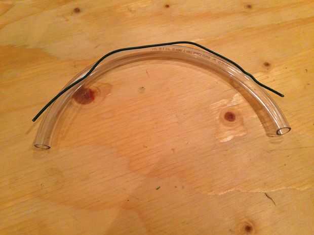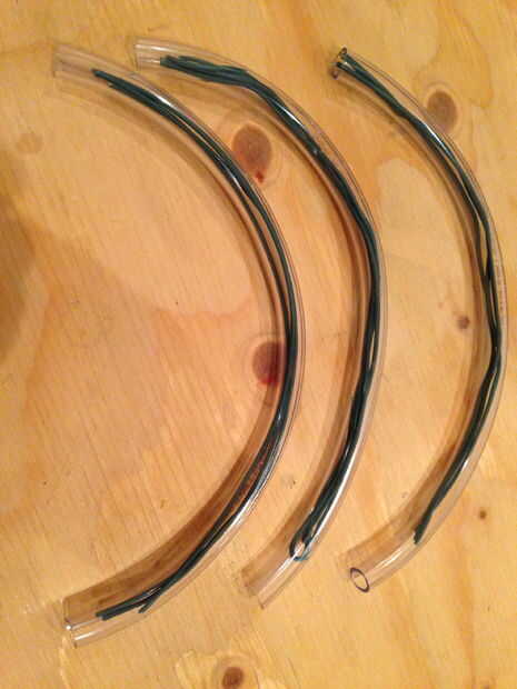 3. Deslice el 1 cable en el tubo. Prueba para ver si se curva y permanecer en el lugar. Seguir añadiendo más uno por uno para probar esto. Es importante que la tubería puede doblar fácilmente pero no debe ser demasiado dura para evitar que se ajuste.
