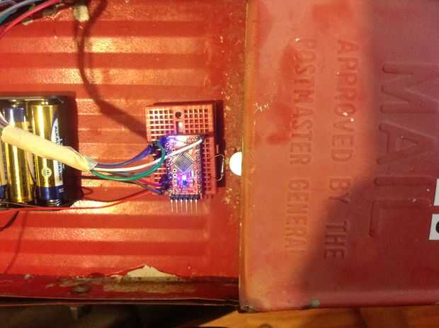 El interruptor de láminas y el imán activarán cuando son menos de la mitad una pulgada alejados uno del otro. Así, cuando el imán es más de la mitad una pulgada lejos dirá el buzón está en y cuando su menos de la mitad una pulgada lejos que el sensor va a decir que la puerta está abierta.