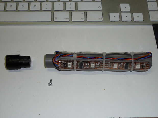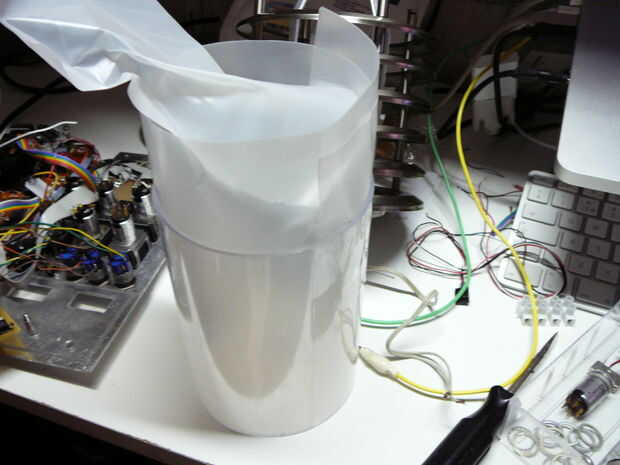 Cortarlos en 3 piezas que pasará alrededor de un tubo de centro montado en la tapa, estos cambiarán de color dependiendo de la configuración.