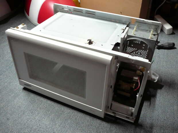 !!! ¡ ADVERTENCIA! Hornos de microondas utilizan por lo menos unos 1000 voltios para trabajar y sostener una carga cuando la cosa esté desenchufada. Lo dejamos un par de días desconectado y entonces descarga el capacitor interno. Si no sabes cómo hacerlo con seguridad, no hacerlo en absoluto.