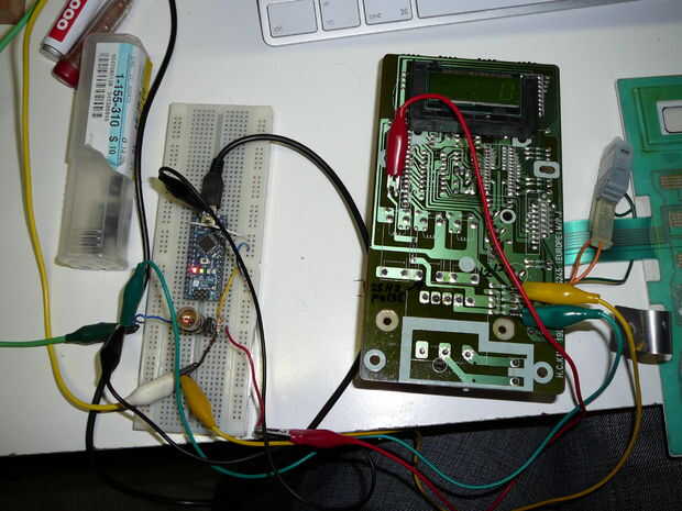 La almohadilla del botón fue seetrough para que podamos seguir las líneas allí a la conexión de pines derecha y anote qué pin va a qué botón. A continuación hice el circuito impreso listo para el uso móvil, esto significa quitar el transformador y cualquier otro circuito de 220 voltios.