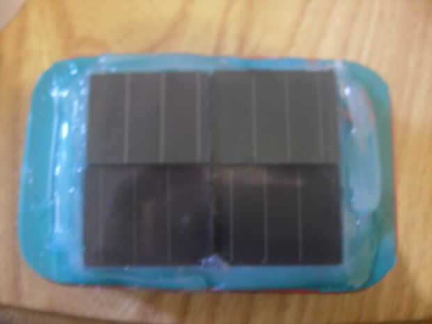 He probado estas y 4 paneles fueron salida de 9v y casi 4v dentro de mi casa, luego perforar un agujero en la tapa de la lata para los cables y pegado de los paneles a la parte superior de la tapa,