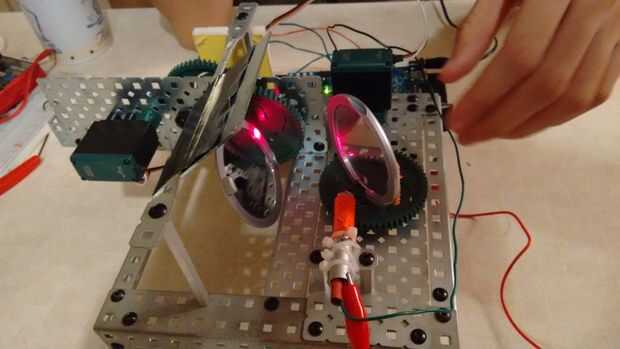 Sin embargo y por supuesto nos topamos con algunos desafíos. El IoT Intel requiere una mano delicada y requiere un par de sesiones de flashes para que las cosas en la pista, y luego las comunicaciones con los servos de espejo un poco squirrely. Los servos no apagan al final del programa, llevando a los servos casi sobrecalentamiento. Con los servos quisquillosos que podemos actualmente sólo objetivo el láser en el techo - el gato bueno, pero no es tan bueno!
